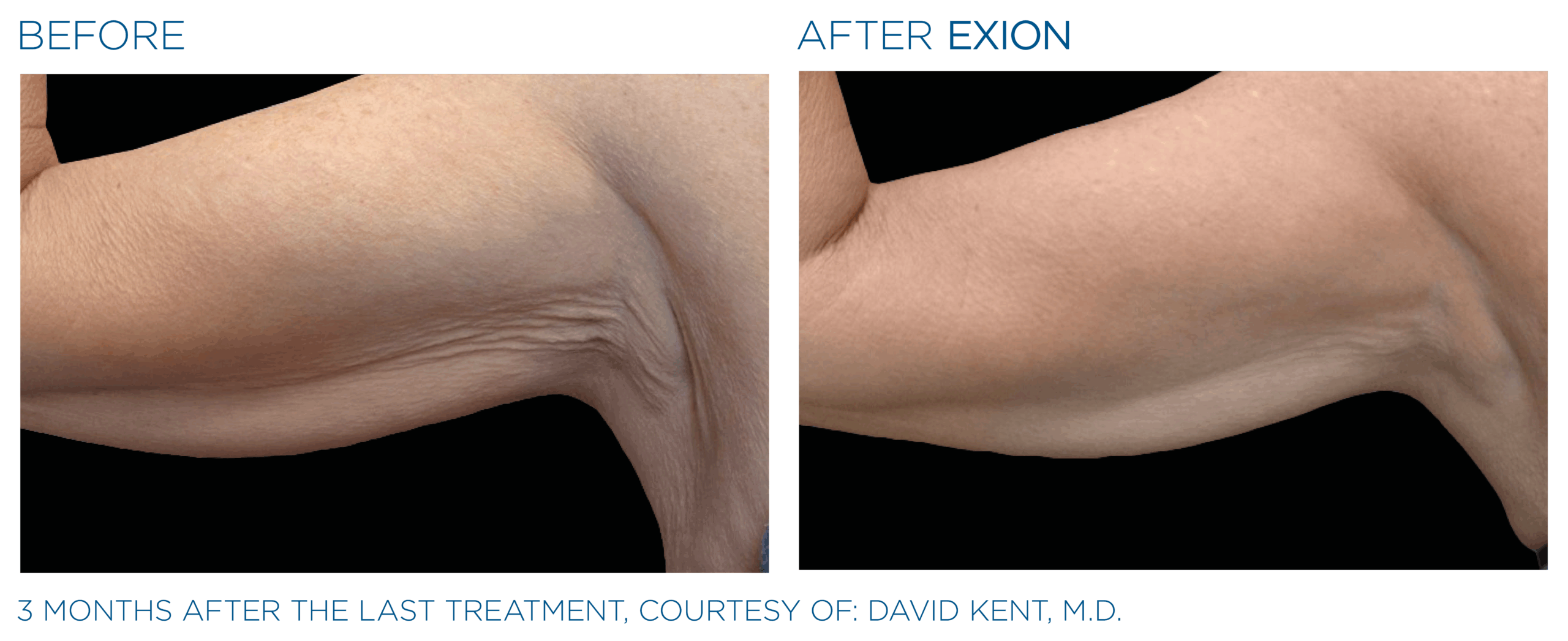 EXION can be used on many common problem areas, including abdomen, upper back and bra bulge, love handles, inner thighs, buttocks and banana rolls, knees, and upper arms.
